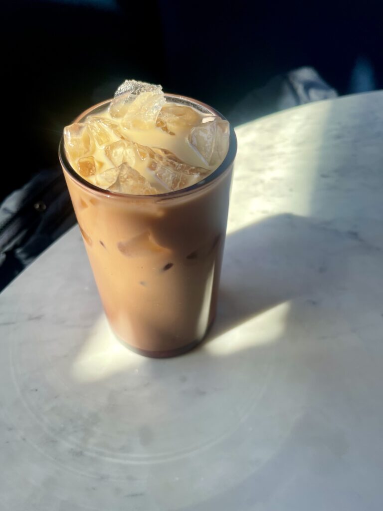 One thing that really stood out was the coffee menu. It’s much more expansive than you would expect, with traditional Turkish coffee, spiced lattes, and unique drinks that tie back to the same Mediterranean flavors you see on the food menu. After a lot of consideration, I chose the Open Sesame latte, made with honey tahini, which I learned is made from freshly ground sesame seeds. It was such a standout, and I already can’t wait to come back and try more.